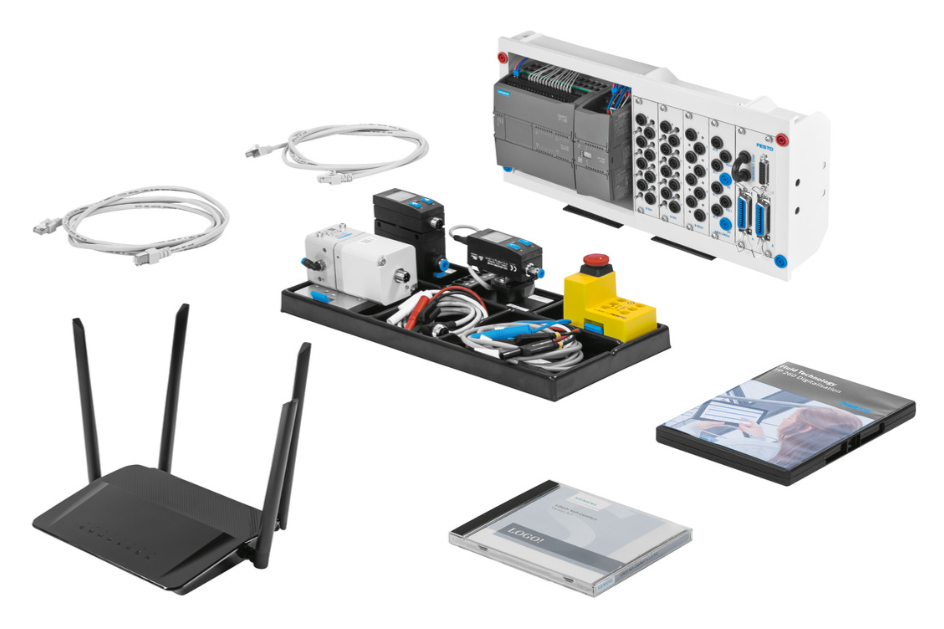 Set de echipamnte TP 260.v2 - nivel avansat - digitalizare in pneumatică - Stand educațional pentru studiul pneumaticii digitale cu 15 exerciții, conține ghiduri pentru profesori și elevi. Se adresează liceeelor tehnologice cu specializările: automatizări, mecanică, electrică, mecatronică. Setul de aparate „Digitalizarea sistemelor pneumatice, nivel avansat (TP 260)" prezintă o introducere în mentenanța inteligentă și colectarea datelor de operare. Aceasta implică colectarea și evaluarea datelor achiziționate în mod continuu de la controllerele electropneumatice. Un controller cu memorie programabilă preia controlul acționărilor, procesează semnalele senzorilor și transmite datele înregistrate către un server web. Cauzele erorilor definite de către cursanți, precum și măsurile de soluționare a problemelor sunt transmise dispozitivelor terminale mobile și sprijină soluționarea sistematică a problemelor. Obiective de învățare Sarcinile mecanicului industrial și susținerea digitalizării în scop de mentenanță Analiza unui controller simplu din perspectiva posibilităților de digitalizare Selectarea senzorilor potriviți pentru înregistrarea de date digitale Analiza datelor digitale pentru monitorizarea stării Implementarea unui sistem de rețea pentru recepționarea datelor digitale Beneficii Componente de calitate industrială Siemens S7-1200 cu intrări și ieșiri analogice Intrarea în digitalizare, în Smart Maintenance și în Industria 4.0 Construirea unei rețele de comunicare Trimiterea automată de e-mail de către instalație în caz de eroare Componentele sunt furnizate în organizatoare practice. Organizatoarele se potrivesc în sertarele mobilierului de laborator. Simbolurile adezive pentru marcarea clară a locației de depozitare a componentelor în organizator sunt incluse în pachetul de livrare.
