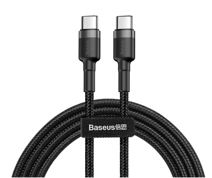 CABLU alimentare si date Baseus Cafule, Fast Charging Data Cable pt. smartphone, USB Type-C la USB Type-C PD2.0 20V/5A, brodat, 2m, gri+negru