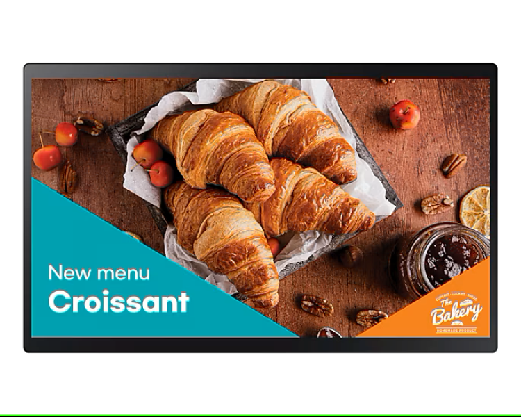 Monitor Touch SAMSUNG QB24C-T, 24", 250nit, 16/7, FHD, 14ms, contrast static 1000:1, mătuire 10%, Tizen 7.0, MagicINFO S6, CPU A72*4, RAM 2.5GB, stocare 8GB. Temperature sensor, auto source switching & recovery, Button Lock, Hot key option, Plug&Play. Conectivitate: 1xHDMI1.4, HDCP2.2, 1xUSB2.0, 1xLAN, 1xRS232C, Audio Out Stereo Mini Jack. Sticla protectie 2.0T, boxe 5W, rama 17.9mm T/B 9.4mm L/R, dimensiuni 547.9x334.4x34.6mm, VESA 100x100, greutate 4kg, consum max 38.5W. Garantie 3 ani. Necesita suport de perete sau stand mobil; pentru Signage necesita licenta MagicINFO