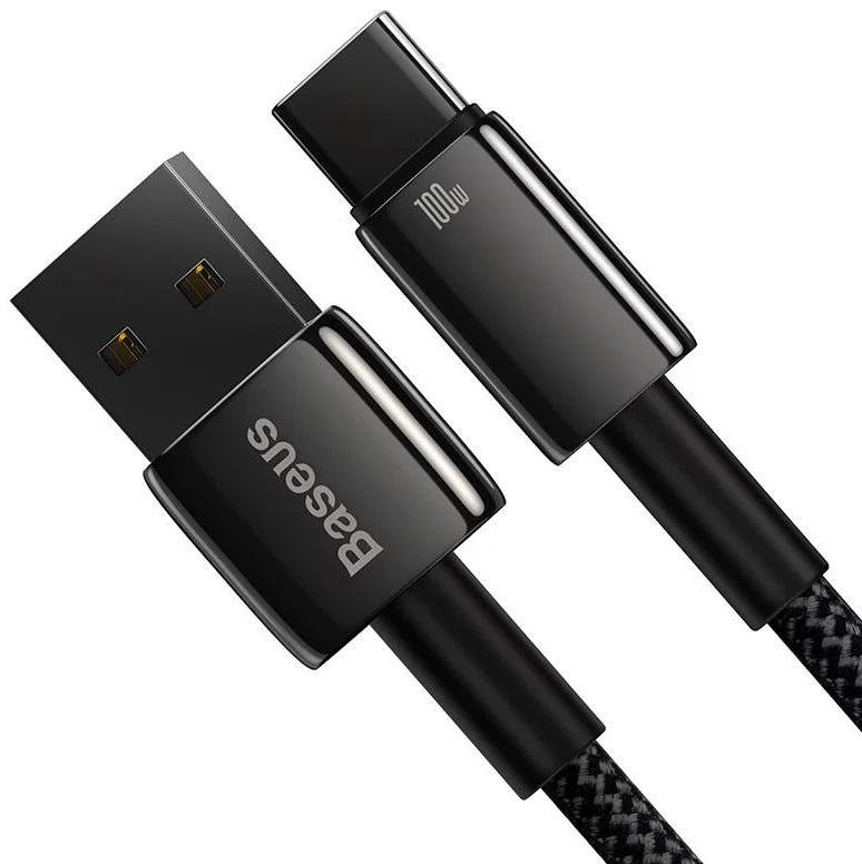 CABLU alimentare si date Baseus, Fast Charging Data Cable pt. smartphone, USB la USB Type-C (T), 100W, 480Mbps, aliaj zinc, braided(nylon), 2m, negru