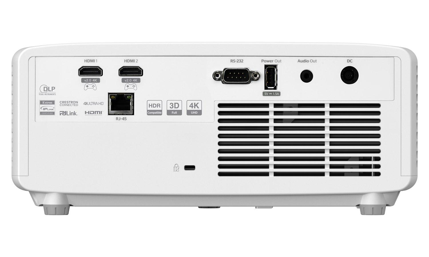 Videoproiector Optoma UHZ35, 4K UHD 3840*2160, 3.500 lumeni, 500.000:1, 16:9/ 4:3/ 16:10, dimensiune maxima imagine 303'', laser 30.000 ore, distanta maxima de proiectie 9.4 m, zoom 1.6x, 2* HDMI, USB-A power 1.5A, audio out, RJ45, RS232, 28-35 dB, full 3D, Security bar, Kensington Lock, Password protected interface, IP6X, 24/7 operation, 360 gr, telecomanda cu baterie inclusa, boxa 15W, 3 kg, culoare alb