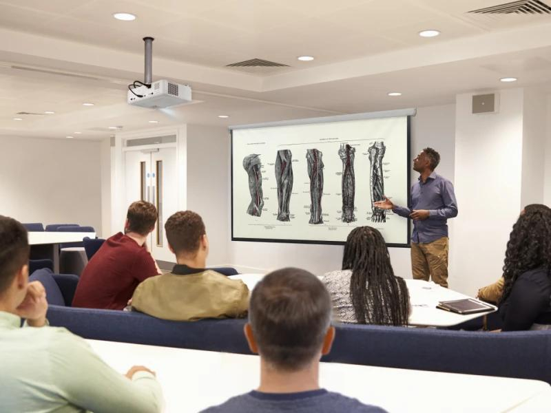Videoproiector ViewSonic LS610HDH, FHD 1920* 1080, LED 60.000 ore, 5.000 lumeni, 3.000.000:1, zoom optoc 1.2x, dimensiune imagine 300", distanta proiectare 0.87-10.38 m, 27-32 dB, 2* HDMI, audio in/ out, USB Tip A (Alimentare): 1 (5V/1.5A), RS232, RJ45, difuzor 10W, 5kg, telecomanda cu laser pointer, QSG, culoare alb